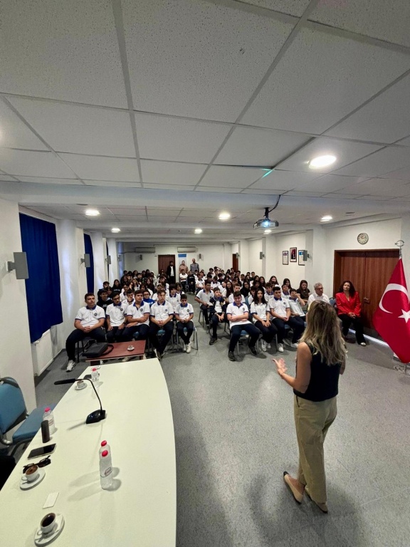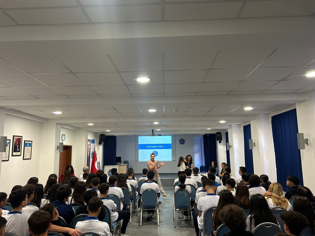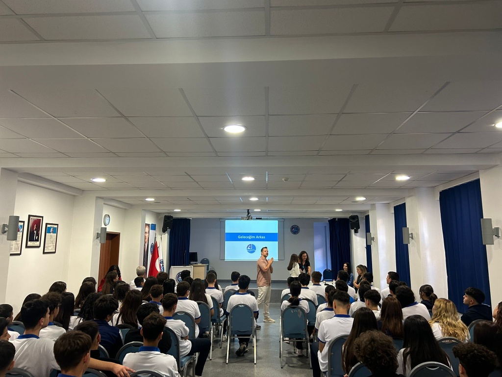 23.09.2025 tarihinde okulumuz konferans salonunda, yeni eğitim-öğretim yılının başlaması vesilesiyle Arkas Holding yetkilileri öğrencilerimizle bir araya gelmiştir. Bu buluşmada 9. sınıf öğrencilerimize ‘‘Geleceğim Arkas’’ staj programı tanıtılmış; Arkas Holding’in çalışma alanları ve sunduğu kariyer fırsatları hakkında bilgi verilmiştir.